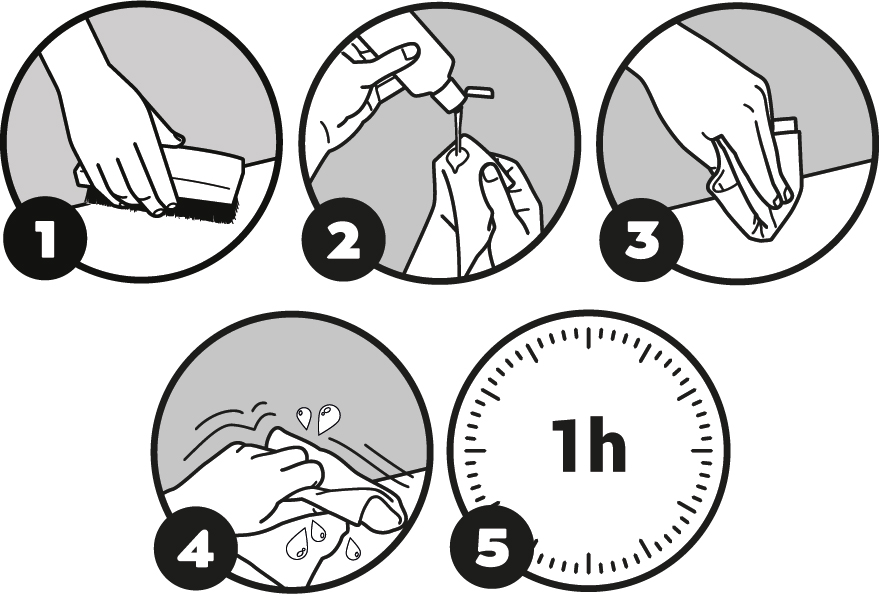 2. Abocar una petita quantitat sobre un drap i fregar la superfície a netejar.
